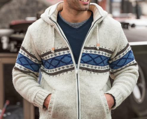 You’ll be all ready for carols or winter walks with this wonderful fleece-lined jacket, with the outer hand knit by artisans working in Nepal. A wonderful replacement for coats and jackets … and so beautiful!